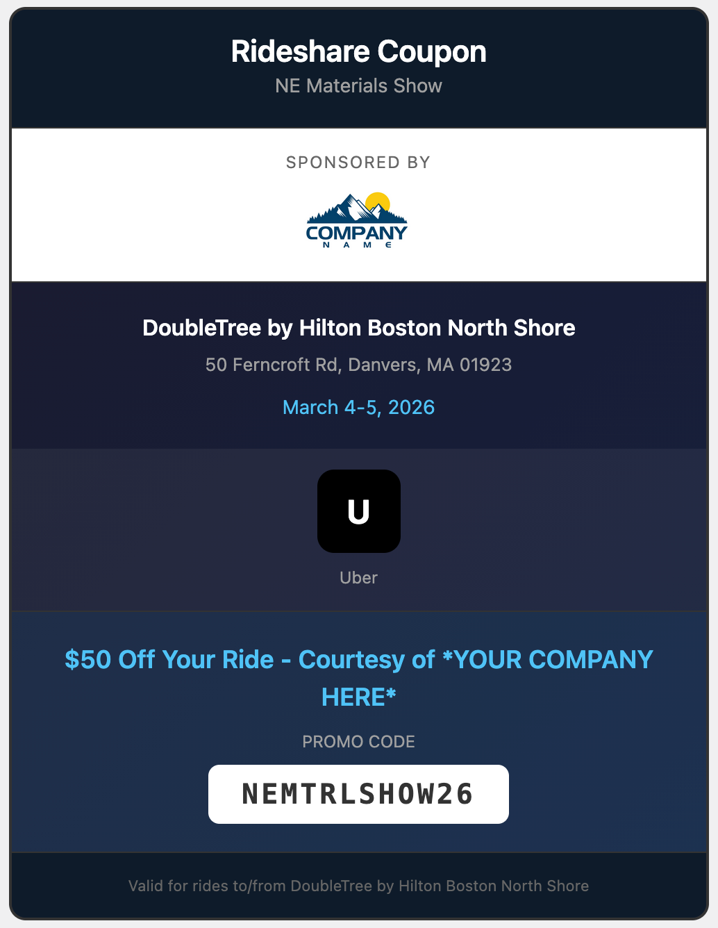 Get attendees to and from the show safely and conveniently while associating your brand with seamless, modern travel solutions.